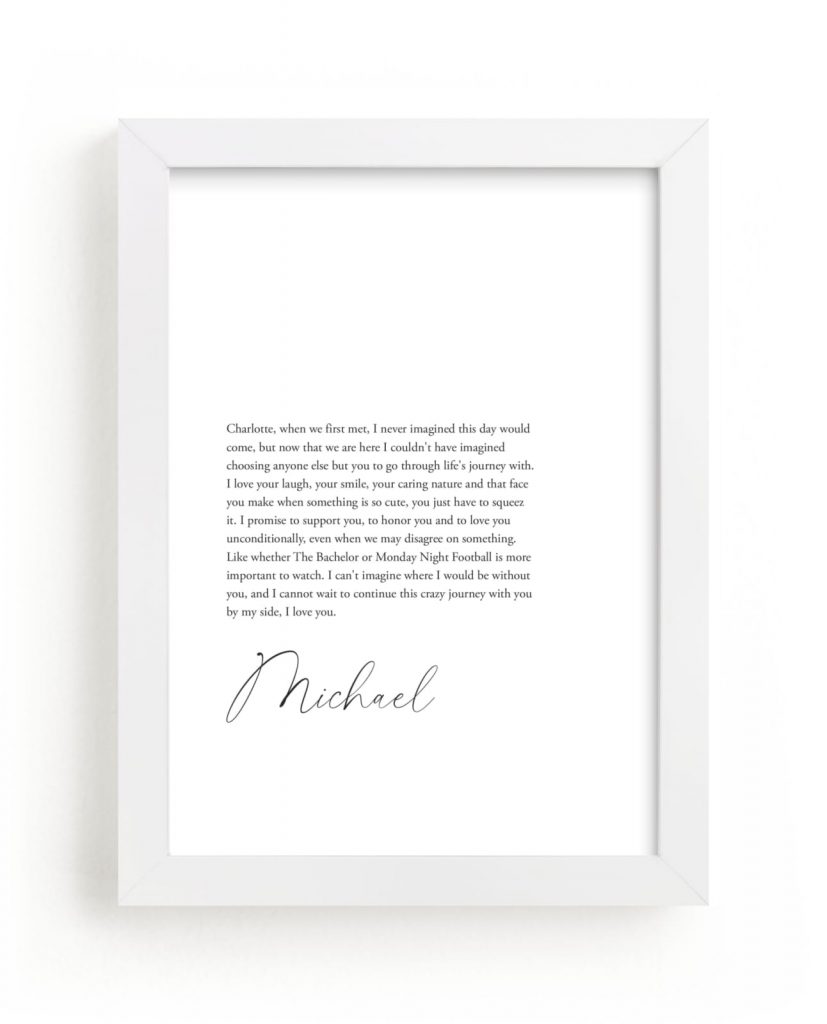 Handcrafted in Italy, this white wood frame is made from milled wood sourced from FSC-certified managed forests. You can turn this frame into a piece of art through your wedding vows or other meaningful words or even sayings.